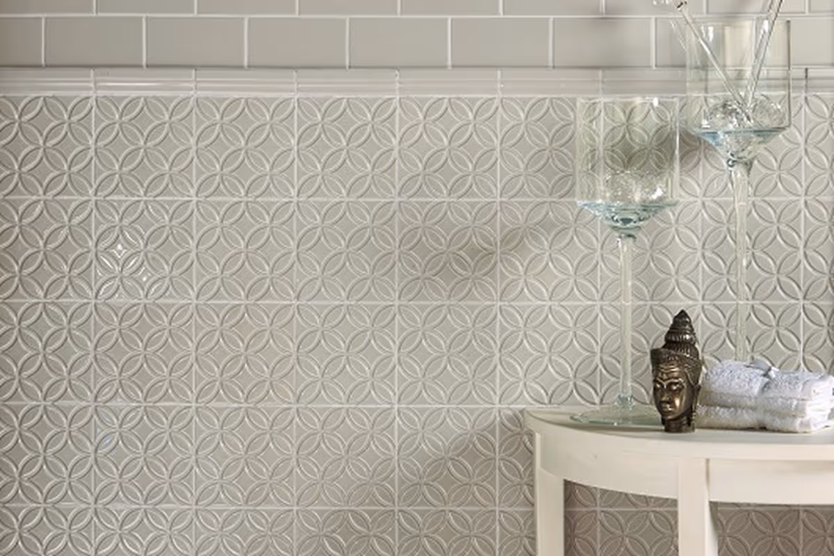 Azulejos de revestimiento en pasta blanca, de pequeño formato, con acabados singulares como satinado, cuarteado o microcuarteado, de alto brillo y con destonificados naturales y formas geométricas no estándar.